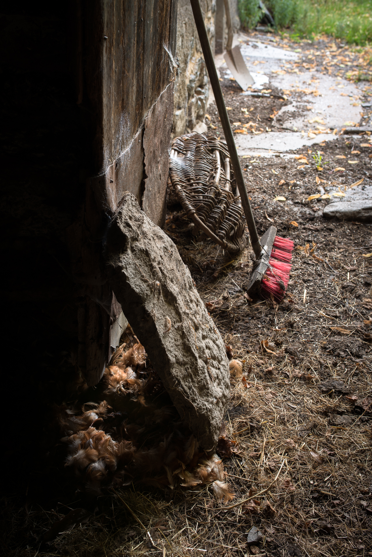 La poule avait cherché refuge derrière la lauze …